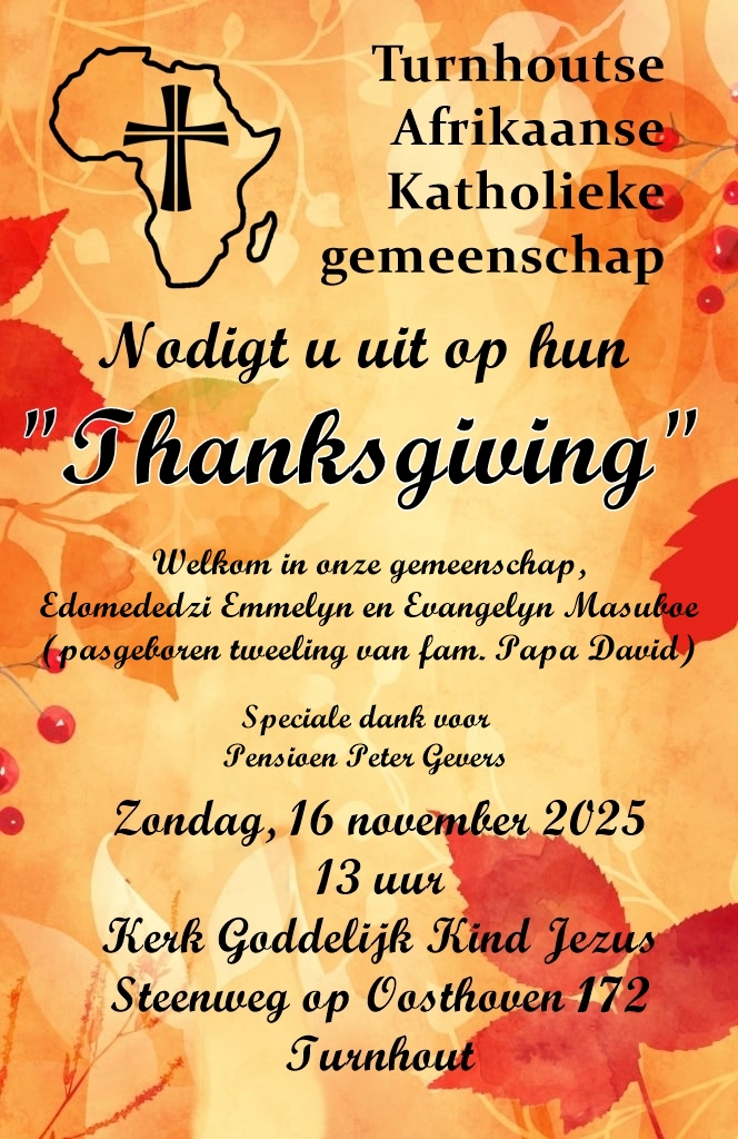 De Afrikaanse gemeenschap van onze pastorale eenheid nodigt iedereen uit op haar Thanksgiving.